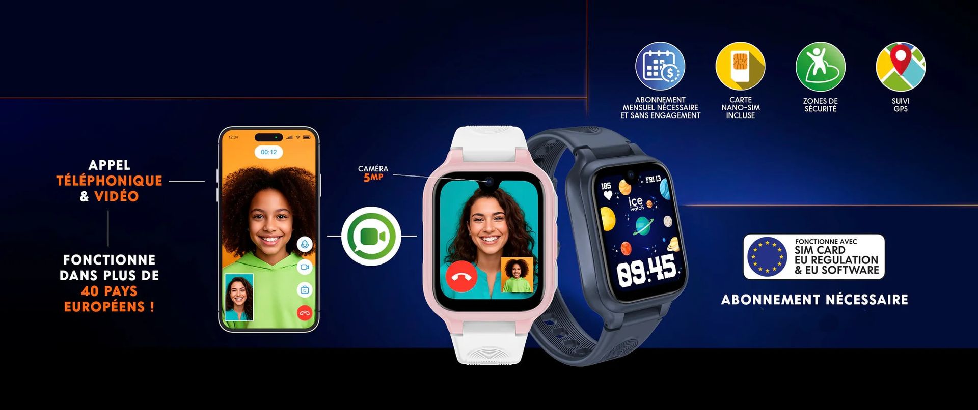 Les montres géolocalisables ICE smart junior - Find My (Apple) ou Find Hub (Google) et les ICE kids 4G, avec appel téléphonique et vidéo, viennent compléter la famille ICE smart junior.