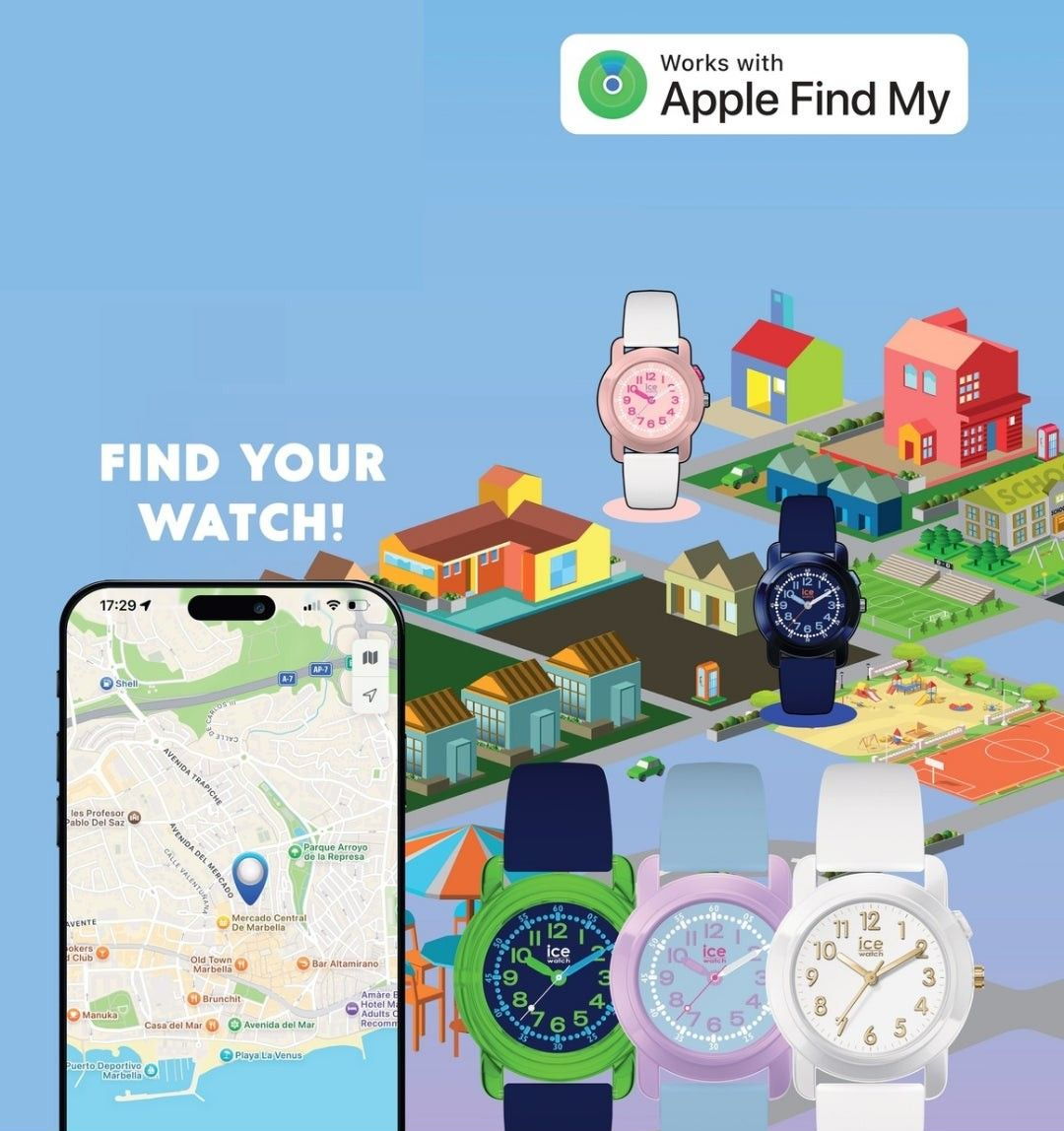 Ihr kleines Extra? Dank der integrierten Find My-Technologie von Apple kann die ICE find-Uhr geortet werden ... und Eltern und Großeltern können beruhigt sein !