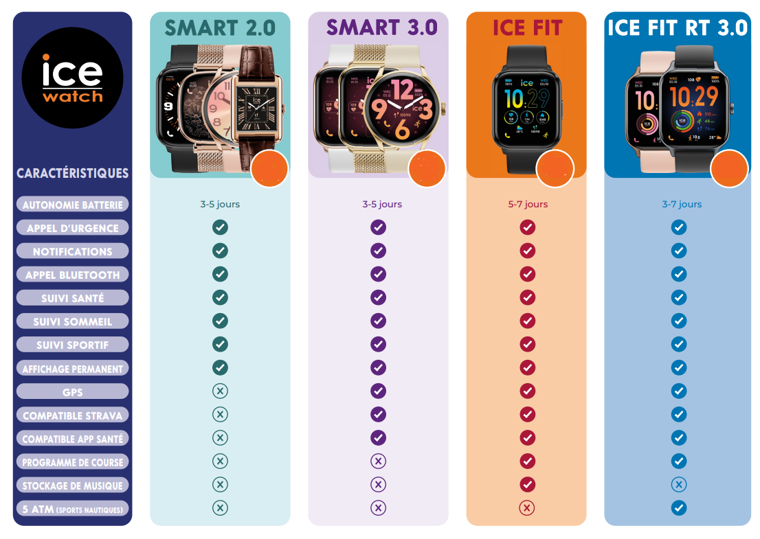 Elle inclut aussi un suivi du sommeil permettant d’analyser les phases de sommeil (léger / profond) et de visualiser les plages de repos via l’app ICE smart, pour aider à instaurer des routines saines.